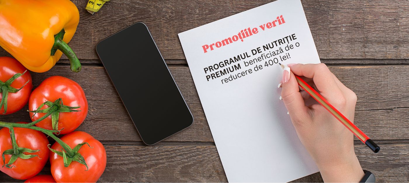Vara asta am pregatit super promotii pentru tine! Achizitioneaza programul de nutritie "Eu ce mai mananc azi?" si primesti gratuit o sedinta de consiliere nutritionala, in valoare de 275 lei! Grabeste-te, doar primii 20 de cumparatori beneficiaza de oferta, iar primele 10 locuri sunt deja ocupate!